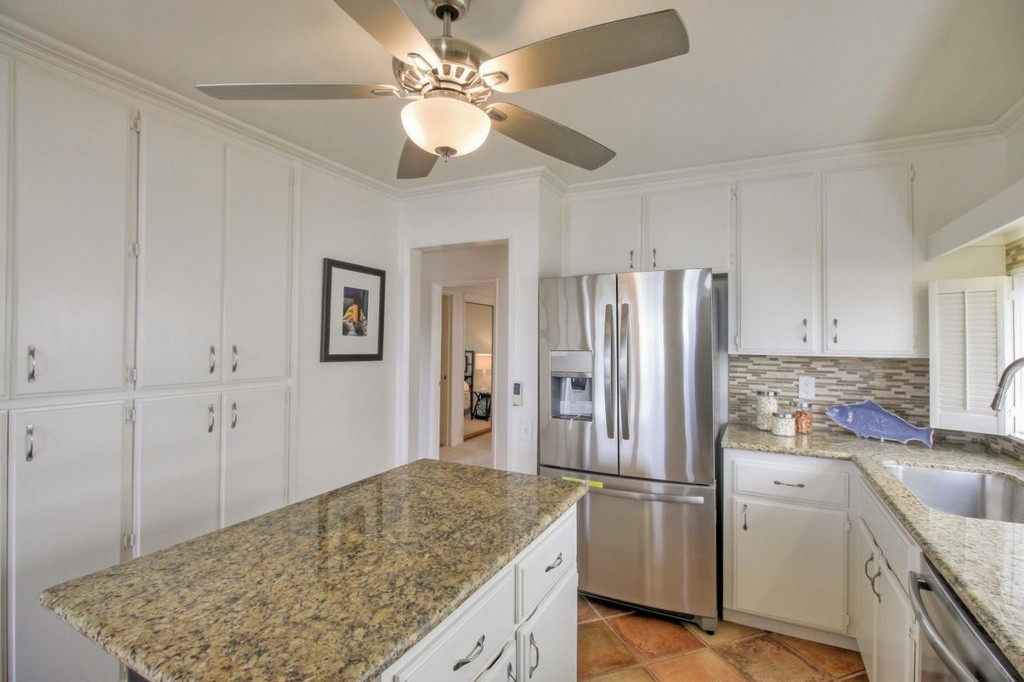 This 2bd/2bth ground-level unit features a kitchen with stainless appliances, ample cabinetry, with granite counters and a center island. There is a spacious living room with a decorative fireplace and a formal dining area with a patio that overlooks the waterfront. The primary suite also has a private patio with nice views and an en suite bath with dual sinks and an over sized tub. A flexible space for a den or office and the secondary bedroom sits adjacent to a full bath.