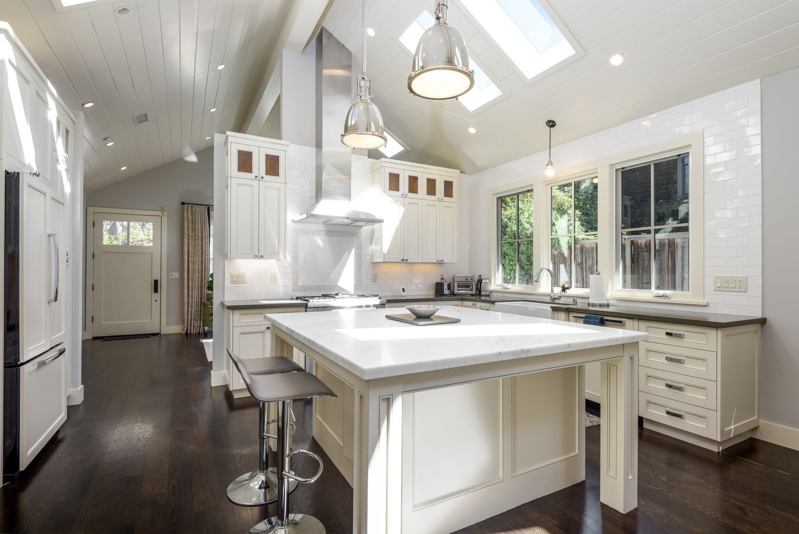 Enjoy the best of Downtown Palo Alto's many shops, restaurants, cafes and parks all within steps from this charming home. This modern home embodies timeless design and functional living elements, including an open floor plan with high ceilings and well placed windows that fill the house with natural light, beautiful custom kitchen cabinetry, marble and quartz countertops, and designer appliances.